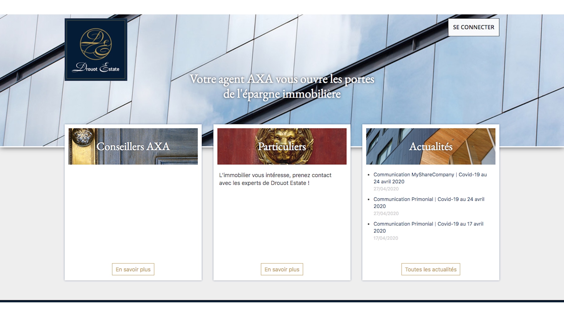 AXA vous ouvre les portes de l'épargne immobilière. La société Drouot Estate est spécialisée dans la vente en immobilier patrimonial mais aussi de placement en SCPI. Leur nouveau site web propose de nombreuses solutions patrimoniales.
